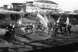 (20 септември 1963) За почест пред славните партизански и военни знамена. Пресфото – БТА, снимка Ив. Камберов