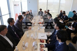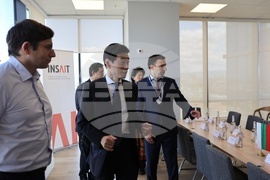 София (5 май 2023) В Synergy Tower в София Тех Парк се провежда събитие на INSAIT - Институт за компютърни науки, изкуствен интелект и технологии с участието на вицепремиера Атанас Пеканов и министъра на икономиката, търговията и индустрията на Япония Ясутоши Нишимура и водената от него бизнес делегация. Снимка: Владимир Шоков /БТА (ЕД)