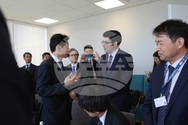 София (5 май 2023) В Synergy Tower в София Тех Парк се провежда събитие на INSAIT - Институт за компютърни науки, изкуствен интелект и технологии с участието на вицепремиера Атанас Пеканов и министъра на икономиката, търговията и индустрията на Япония Ясутоши Нишимура (на снимката) и водената от него бизнес делегация. Снимка: Владимир Шоков /БТА (ЕД)