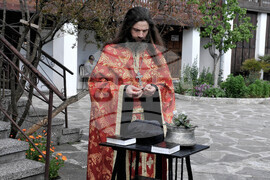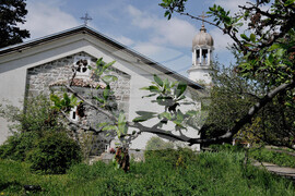 Поморие (5 май 2023) Манастирът "Свети великомъченик Георги Победоносец“, ден преди храмовия си празник и ден преди празника на града. Манастирът е изграден през далечната 1856 година и сега се намира в новата част на Поморие. Мраморен барелеф от втори -трети век след Христа с образ на тракийския конник показва, че на това място е имало тракийско светилище. В манастира днес се съхраняват много ценни образци на иконографското изкуство от XVIII I XIX век. Храмовата икона е рисувана от анхиалеца Темистокъл Диамандопуло Зограф. Снимка: Тодор Ставрев/БТА (ЕД)