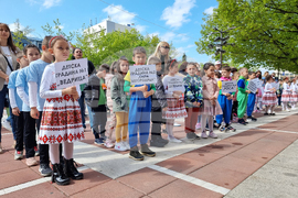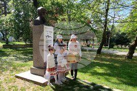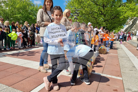 Благоевград (5 май 2023) Деца от всички детски градини в Благоевград се включиват в игра „Търсене на съкровища“, организирана от ДГ „Мак“ и Община Благоевград. Децата търсият с карта ковчежета, скрити при емблематични паметници в центъра на града, а в тях откриват полезни храни. Празникът открива кметът на Благоевград Илко Стоянов, директорът на дирекция „Култура, спорт и туризъм“ Силвия Домозетска (на снимката) и директорът на детска градина „Мак“ Галина Арабаджиева.