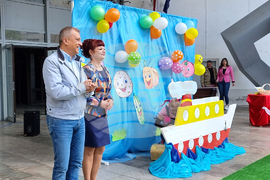 Благоевград (5 май 2023) Деца от всички детски градини в Благоевград се включиват в игра „Търсене на съкровища“, организирана от ДГ „Мак“ и Община Благоевград. Децата търсият с карта ковчежета, скрити при емблематични паметници в центъра на града, а в тях откриват полезни храни. Празникът открива кметът на Благоевград Илко Стоянов, директорът на дирекция „Култура, спорт и туризъм“ Силвия Домозетска и директорът на детска градина „Мак“ Галина Арабаджиева. На снимката ( от ляво надясно): кметът на Благоевград Илко Стоянов и директорът на детска градина „Мак“ Галина Арабаджиева.