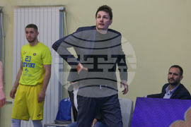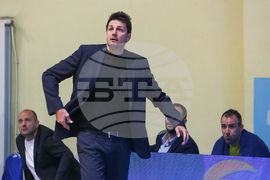 София (5 май 2023) Четвъртфинална среща по баскетбол между отборите на Левски и ЦСКА се играе в столичната зала "Триадица". На снимката: треньорът на Левски Димитър Ангелов. Снимка: Цветомир Петров/БТА(ЕД)