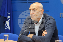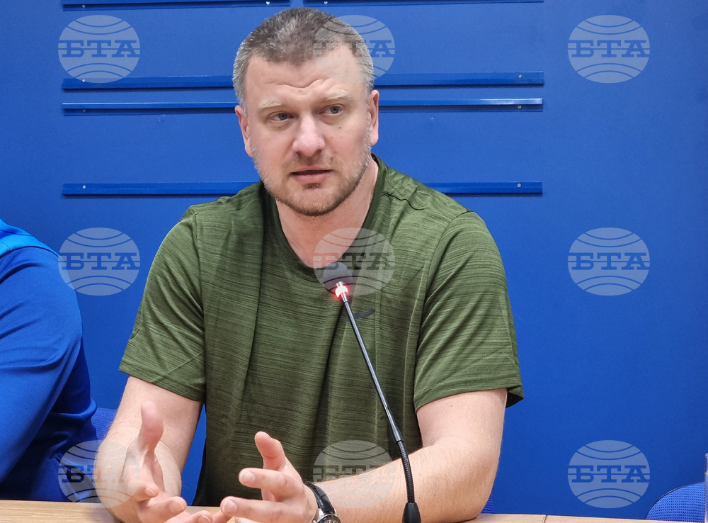 Плевен (9 май 2023) В Националния пресклуб на БТА в Плевен се провежда пресконференция на Баскетболен клуб "Спартак". На снимката: старши треньорът Любомир Минчев.