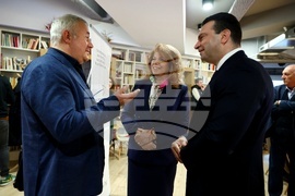 София (10 май 2023) В Литературен клуб „Перото" се провежда дискусионен форум „Демографската криза – причини, фактори, динамика", организиран от Стратегическият институт за национални политики и идеи (СИНПИ) с председател Калоян Паргов. На снимката (от ляво надясно): доц. д-р Харалан Александров, вицепрезидентът Илияна Йотова, председателят на СИНПИ Калоян Паргов.