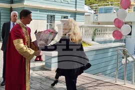 Варна (15 май 2023) 103-а годишнина от основаването на Икономическия университет във Варна бе отбелязана днес в учебното заведение. Тържеството уважиха областният управител Марио Смърков, кметът Иван Портних, представители на бизнеса, на местната и държавната власт. Ректорът на университета проф. Евгени Станимиров връчи традиционните академични отличия "Студент на годината" и "Докторант на годината". За пръв бе връчена награда и за успешно реализиран студент на университета, която е разделена в три категории. Снимка: Мила Едрева/БТА (ЕД)
