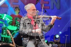 Плевен (16 май 2023)Стотици плевенчани пяха, а дори и някои от тях танцуваха, на концерта на супер група "Фондацията" на централния площад "Възраждане" в града тази вечер. Той бе последното събитие в програмата за празника на Плевен, подготвена от общината. Кирил Маричков, Иван Лечев, Добрин Векилов-Дони, Славчо Николов и Венко Поромански (на снимката) изпълниха класики на българския рок. Снимка: Елина Кюркчиева/БТА (ЕД)
