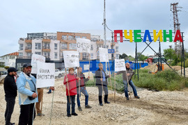 Варна (16 май 2023) Живеещи във варненската местност "Пчелина" излязоха на протест заради пропаднал път вследствие на изпълнението на проект от ВиК-Варна. Според тях вече трети месец са без достъп до имотите си с автомобили. Снимки: Красимир Кръстев/БТА (ЕД)