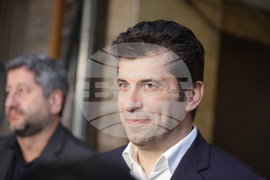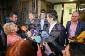 София (16 май 2023) Представители на „Продължаваме Промяната-Демократична България“ правят изявление пред медиите след проведено заседание на Национален съвет. На снимката: Кирил Петков.