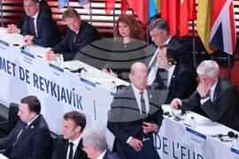 Рейкявик (16 май 2023) Исландия е домакин на четвъртата среща на върха на държавните и правителствените ръководители на Съвета на Европа. В събитието участват премиерът на Албания Еди Рама (дясно), министър-председателят на Великобритания Риши Сунак (втори отдясно) и министър-председателят на Украйна Денис Шмигал (трети отдясно).
