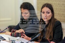 София (17 май 2022) Комисията по икономическа политика и иновации провежда заседание в Народното събрание. На снимката: Ирина Щонова (втора отляво) и Иван Маринов (дясно).