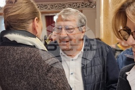 София (17 май 2023) Изложба в памет на Петър (Чочо) Попйорданов открива днес Народният театър по случай десетгодишнината от смъртта му. Експозицията със снимки, костюми и реквизит от театралните изяви на актьора е разположена в партерното фоайе на Голяма сцена. На снимката: Василка Бумбарова и Иван Попйорданов.