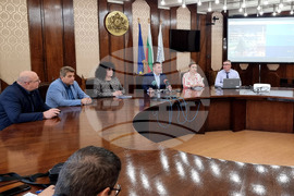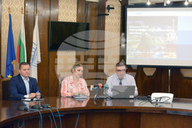 Русе (22 май 2023) Първите публично достъпни слоеве от географската информационна система на Община Русе се представя на пресконференция днес от кметския екип на дунавския град. На снимката (от ляво надясно): кметът на Русе- Пенчо Милков, заместник-кметът "Икономика и международно сътрудничество" Златомира Стефанова, н-к. отдел Информационна техника Николай Кутинчев.