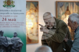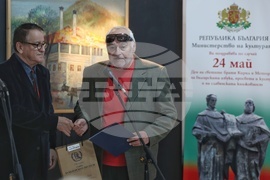 София (23 май 2023) Съюзът на българските писатели (СБП) връчва за 101-и път годишните си литературни награди. Осемнадесет писатели и трима общественици отличават в галерия „Средец“ на Министерството на културата. На снимката: за принос в съвременната българска литература награда взе Кирил Пецев (дясно).