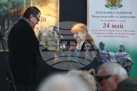 София (23 май 2023) Съюзът на българските писатели (СБП) връчва за 101-и път годишните си литературни награди. Осемнадесет писатели и трима общественици отличават в галерия „Средец“ на Министерството на културата. На снимката: награда за Литературна критика взе Ваня Добрева.