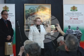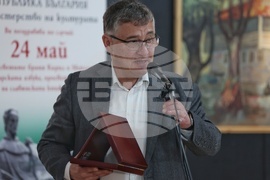 София (23 май 2023) Съюзът на българските писатели (СБП) връчва за 101-и път годишните си литературни награди. Осемнадесет писатели и трима общественици отличават в галерия „Средец“ на Министерството на културата. На снимката: награда за подкрепа на българската литература взе управителят на „Мото-Пфое“ ЕООД Атанас Фурнаджиев (дясно).