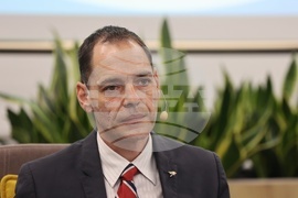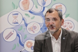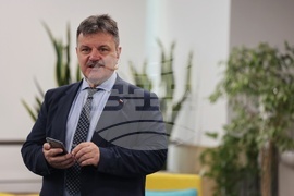 София (26 май 2023) В Launchee, зала Кеплер на партерния етаж на ЦУМ се провежда дискусия на тема: „Чист въздух за здраве. Възможности за подобрение чрез стандартите на СЗО“. Организатори са Сдружение „Въздух за здраве“ и фондация „Фридрих Еберт“. На снимката: Жак Папаро, фондация „Фридрих Еберт“.