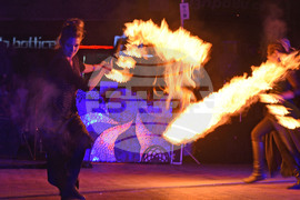 Варна (1 юни 2023) Във Варна се провежда Международен театрален фестивал. След спектакъла „Представление и половина“ на Театър „Българска армия“ на сцената на Варненския театър, фестивалът продължи на открито с цирковата продукция „Пънк шоу пропан“ на чешките трупи „МанстерВил“ и „Blackout Paradox“ с автор и режисьор Войта Щулц. Снимка: Красимир Кръстев/БТА (ЕД)