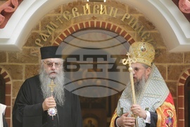 София (12 юни 2023) Тържествено освещаване на новоизградения православен храм, който ще носи името на небесния закрилник и покровител на българския народ, на минерално-суровинната индустрия и на Минно-геоложки университет - Св. Иван Рилски, се провежда в МГУ. Освещаването на храма "Св. Иван Рилски" е част от събитийния календар но МГУ за 2023 г. и е сред най-тържествените събития, отличаващи съхранените академични традиции, развиваната активна научна дейност, уважението пред талантливите преподаватели - лидери в своите области, и гордостта от обучаваните студенти. На снимката: Църковният ритуал се води от Негово Преосвещенство Белоградчишкия епископ Поликарп (дясно) - викарий на Софийския митрополит и български патриарх Неофит и от Негово Преосвещенство Адрианополския епископ Евлогий (ляво) - игумен на Рилската света обител.