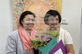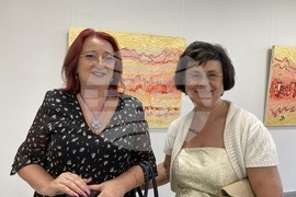 София (2 август 2023) Изложба с картини, вдъхновени от музиката на композитори, сред които Фредерик Шопен и Йоханес Брамс, и рисувани на живо по време на изпълнения на техни творби, откри художничката д-р Емилия Юкер (дясно) в София. Авторката живее в Хамбург, но представи своите произведения пред българска публика в столичния квартал Красно Село, където е преминало нейното детство.