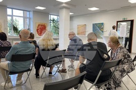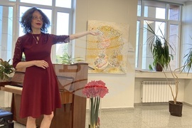 София (2 август 2023) Изложба с картини, вдъхновени от музиката на композитори, сред които Фредерик Шопен и Йоханес Брамс, и рисувани на живо по време на изпълнения на техни творби, откри художничката д-р Емилия Юкер (в средата) в София. Авторката живее в Хамбург, но представи своите произведения пред българска публика в столичния квартал Красно Село, където е преминало нейното детство.