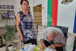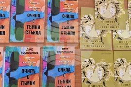 Разград (2 август 2023) Поетът Дачо Господинов представи книгата си „Очила с тъмни стъкла“. Книгата съдържа публикувани и непубликувани досега стихове и импресии на автора, както и преводи на немски, английски, испански и френски език. Домакин на поетичната среща беше областната администрация в Разград. На снимката (от ляво надясно): Галя Ралева, Дачо Господинов, Иван Димитров. Снимка: Садет Кърова/БТА(ЕД)