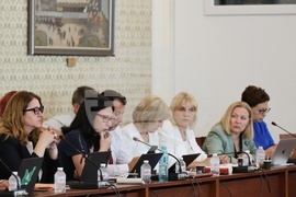София (3 август 2023) В Народното събрание се провежда извънредно заседание на Комисия по правни въпроси. Депутатите обсъждат за първо гласуване на Законопроект за изменение и допълнение на Наказателния кодекс и Законопроект за изменение и допълнение на Закона за защита от домашното насилие. на снимката (от ляво надясно): народният представител от Възраждане Цвета Рангелова, народите представители от БСП Смиляна Нитова и Мая Димитрова, Надежда Йорданова - ПП-ДБ.