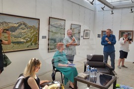 Самоков (5 август 2023) В Художествена галерия "Проф. Васил Захариев" в Самоков се провежда среща разговор с писателя на престижната награда "Букър" Георги Господинов. Пълната зала събра журналисти, културни дейци и медийни представители.