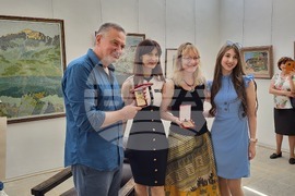 Самоков (5 август 2023) В Художествена галерия "Проф. Васил Захариев" в Самоков се провежда среща разговор с писателя на престижната награда "Букър" Георги Господинов. Пълната зала събра журналисти, културни дейци и медийни представитли. На снимката: Лилия Илиева (ляво) и директорът на Международния джаз фестивал "Д-р Емил Илиев" доктор Татяна Илиева (дясно).
