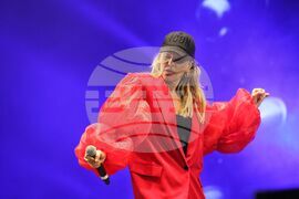 Бургас (5 август 2023) В периода от 4 до 5 август на Морска гара Бургас се провежда най-големият музикален фестивал по българското Черноморие Spice Music Festival 2023. Събитието включва любими изпълнители от 90-те години и привлича хиляди почитатели в района на пристанището. На снимката: изпълнение на Kate Ryan.