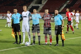 София (5 август 2023) Футболна среща от четвърти кръг на efbet Лига между отборите на Локомотив (София) и Пирин. На снимката: главният съдия Владимир Вълков (в средата).