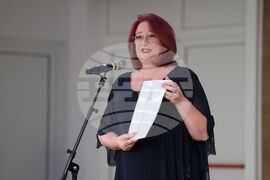 София (7 август 2023) На тържествена церемония в столицата деца от българските общности в чужбина получават награди от три творчески конкурса, обявени от Изпълнителната агенция за българите в чужбина (ИАБЧ). Учениците се награждават след участие в литературен конкурс „Стефан Гечев“, конкурс по рисуване „България в моите мечти“ и творческо състезание по пеене „Любка Рондова“. Домакин на церемонията е Националният дворец на децата. На снимката: изпълнителният директор на Изпълнителната агенция за българите в чужбина Райна Манджукова.