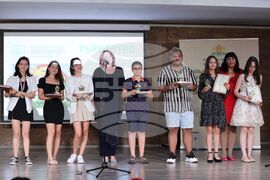 София (7 август 2023) На тържествена церемония в столицата деца от българските общности в чужбина получават награди от три творчески конкурса, обявени от Изпълнителната агенция за българите в чужбина (ИАБЧ). Учениците се награждават след участие в литературен конкурс „Стефан Гечев“, конкурс по рисуване „България в моите мечти“ и творческо състезание по пеене „Любка Рондова“. Домакин на церемонията е Националният дворец на децата. На снимката: писателката Лили Спасова.