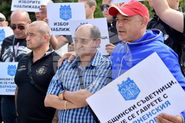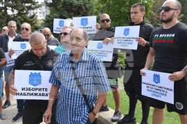 Варна (8 август 2023) Пред Община Варна се провежда митинг от ръководители на спортни клубове, деятели, спортисти, общественици и почитатели в подкрепа на олимпийския шампион от Сеул`88 Ивайло Маринов (в средата). Маринов ще е заставен да се лиши от емблематичното заведение в Морската градина във Варна, което стопанисва вече четвърт век като признание за заслугите му.