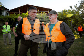 София (12 август 2023) Mинистърът на земеделието и храните Кирил Вътев (вдясно) открива ловния сезон за пернат дивеч в Държавно горско стопанство „София“ до Ловна хижа в кв. Челопечене.