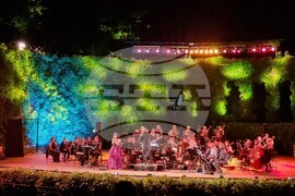 Варна (12 август 2023) Известни музиканти изнесоха в Летния театър на Варна концерт, посветен на 85-годишнината от рождението на Милчо Левиев. Изявата, озаглавена „Соната ‘57“ по името на последния албум на джазмена, събра на сцената музикантите Антони Дончев, Братя Владигерови, Димитър Семов, Вики Алмазиду, Валерия Василенко, Васил Хаджигрудев, Тодор Бакърджиев заедно с оркестъра на Варненската опера под диригентството на Ганчо Ганчев, който бе удостоен на събитието с награда „Кристално огърлие“ по повод 40 години творческа дейност. На снимката: изпълнение на Вики Алмазиду.
