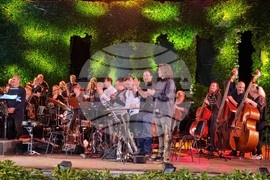 Варна (12 август 2023) Известни музиканти изнесоха в Летния театър на Варна концерт, посветен на 85-годишнината от рождението на Милчо Левиев. Изявата, озаглавена „Соната ‘57“ по името на последния албум на джазмена, събра на сцената музикантите Антони Дончев, Братя Владигерови, Димитър Семов, Вики Алмазиду, Валерия Василенко, Васил Хаджигрудев, Тодор Бакърджиев заедно с оркестъра на Варненската опера под диригентството на Ганчо Ганчев, който бе удостоен на събитието с награда „Кристално огърлие“ по повод 40 години творческа дейност. На снимката: изпълнение на Валерия Василенко.