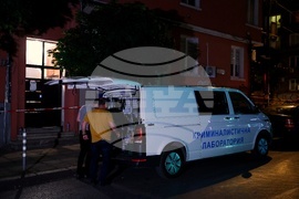 София (12 август 2023) Екип от криминалисти извършва оглед в кооперация на улица „Георги Раковски“ в центъра на София.
