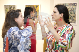 София (15 август 2023) Изложбата "Градът Утопия" на Николай Тотев (ляво) се открива в столичната изложба " Контраст ". Куратор е доктор изк. Ани Венкова (дясно). Снимка: Елена Дикова/БТА(ЕД)