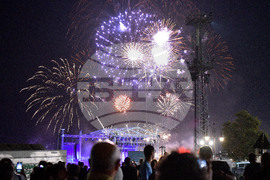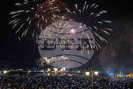 Варна (15 август 2023) Жители и гости на Варна наблюдават от плажа празничната заря по повод празника на града.