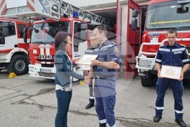 Габрово (16 август 2023) Пожарникари, участвали в ликвидирането на пожарите в Гърция, бяха наградени днес от областния управител на Габрово Мария Башева - Венкова. Пред Регионалната дирекция "Пожарна безопасност и защита на населението" (РДПБЗН) - Габрово Венкова благодари на огнеборците за участието им в спасителните дейности.