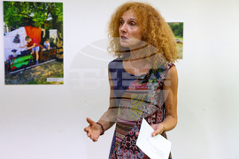София (23 август 2023) Церемония по награждаване на участниците в националния конкурс „Арт-циклиране" се провежда в галерия „Порт А". Организатор е информационна инициатива „Обща селскостопанска политика: Говори науката", изпълнявана от „Агенция Стратегма" ООД с подкрепата на Генерална дирекция „Земеделие и развитие на селските райони" на Европейската комисия. На снимката: Тихомира Трифонова.
