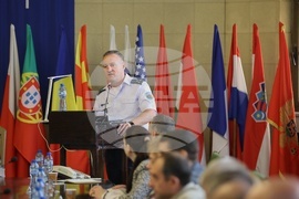 София (24 август 2023) В Министерството на отбраната се отворят публично подадените оферти за изпълнение на проект „Придобиване на нови трикоординатни радари“. Процедурата се провежда на открито заседание на междуведомствена работна група, назначена със заповед на министъра на отбраната, в присъствието на представители на компаниите, подали оферти. На изпратеното от Министерството на отбраната искане за предложение, са получени отговори от пет компании: „Локхийд Мартин“ (САЩ), „Леонардо“ (Италия), „Елта“ (Израел), „Индра“ (Испания), „Талес“ (Франция). На снимката: началникът на Щаба на Военновъздушните сили полковник Димитър Георгиев.