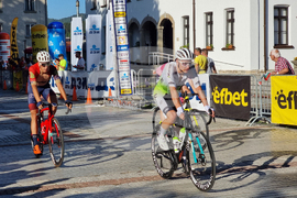 Троян (27 август 2023) Италианецът Микеле Гацоли от отбора на Астана спечели втория полуетап от Пирдоп до Троян в 70-ата международна колоездачна обиколка на България. Втори финишира Томас Якубек, а трети се класира Феликс Стехли. Купата на Гацоли връчи кметът на община Троян Донка Михайлова. На снимката: заместник-кметът на община Троян Ангел Ангелов (ляво) връчи бялата фланелка на Лука Жени (дясно).