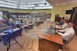 Хасково (28 август 2023) Публично обществено обсъждане на проектобюджета на община Хасково се провежда днес в администрацията. Предлаганият финансов план, който ще бъде гласуван на следващо заседание на Общинския бюджет, е в размер на 145,572 млн. лева, което е с 21 процента ръст спрямо миналата година. На снимката: кметът на града Станислав Дечев.