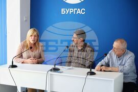 Бургас (29 август 2023) В Националния пресклуб на БТА Бургас се провежда среща дискусия, част от инициативата "Алеко днес" на Българска телеграфна агенция. Събитието е посветено на 160 годишнината от рождението на Алеко Константинов и включва поредица от дискусии в пресклубовете на БТА в цялата страна. На снимката (от ляво надясно): директорът на Дирекция "Регионален държавен архив" - Бургас Данка Георгиева, модераторът на срещата, литературен изследовател, критик и преподавател доц. Йордан Ефтимов, писателят и журналист Иван Сухиванов.