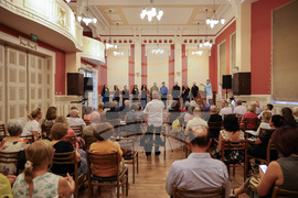 Пловдив (30 август 2023) Смесени хорове от България, Израел и Германия изнесоха концерт в Пловдив в залата на организацията на евреите "Шалом". Изявата е по повод 80 години от спасяването на българските евреи и е част от проекта „Една Бяла светлина". На снимката: председателят на "Шалом" в Пловдив Светлозар Калев.