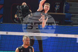 Варна (30 август 2023) В зала "Конгресна" на Двореца на културата и спорта във Варна се играе срещата от група В на Европейското първенство по волейбол между Финландия и Хърватия.