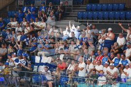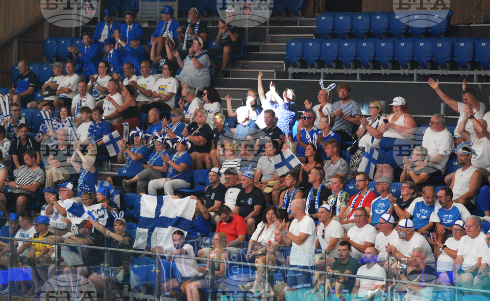 Варна (30 август 2023) В зала "Конгресна" на Двореца на културата и спорта във Варна се играе срещата от група В на Европейското първенство по волейбол между Финландия и Хърватия. На снимката: привърженици на Финландия.