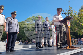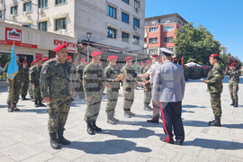 Стара Загора (1 септември 2023) С богата програма 2-ра Тунджанска механизирана бригада в Стара Загора отбелязва 25 години от създаването си. На площада пред общината се проведе официалната церемония по тържественото строяване на военните формирования. По време на церемонията бяха повишени в звание и отличени заслужили военнослужещи. На снимката: командирът на сухопътни войски генерал майор Деян Дешков.